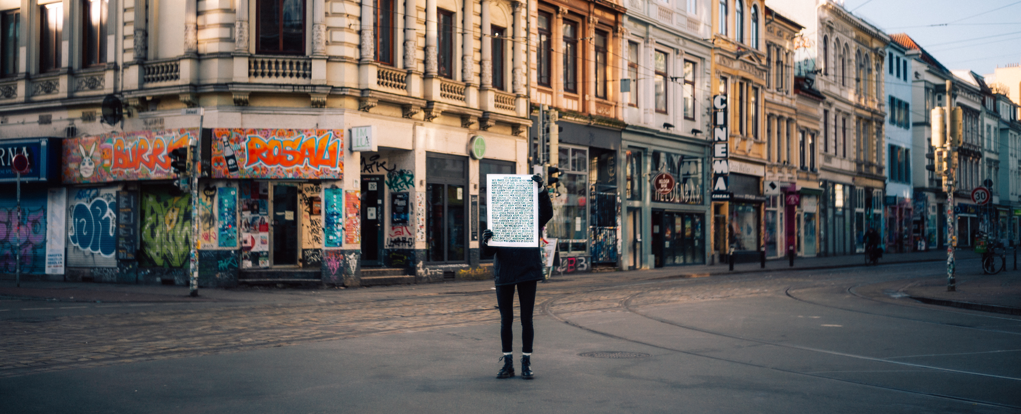 Jetzt, umgeben von einem Berg aus Papier, sind wir bereit, eure vier Wände mit unseren kunstvollen Oden